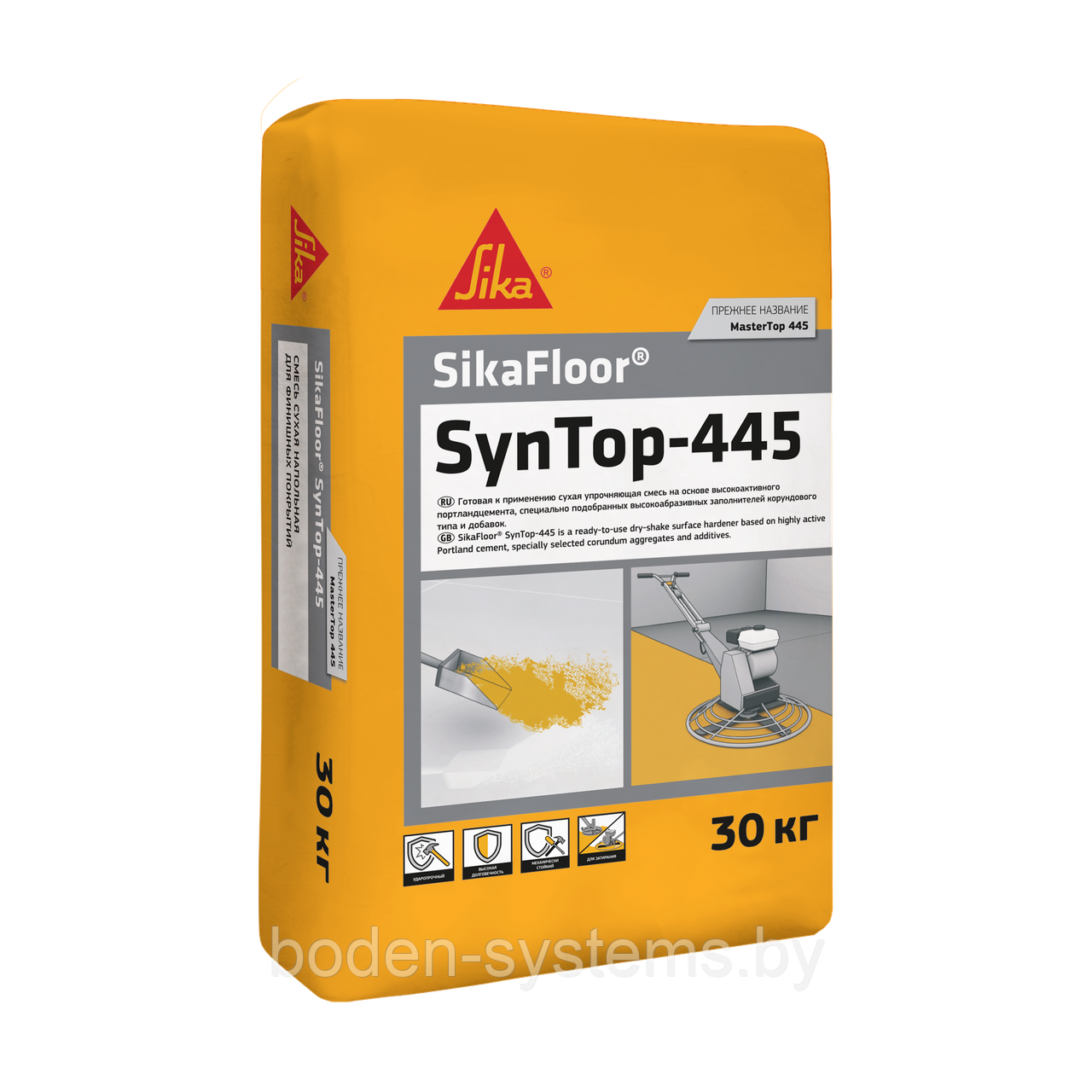 Sikafloor SynTop-445 (прежнее название MasterTop 445) – готовая к применению сухая упрочняющая смесь на основе высокоактивного портландцемента, специально подобранных высокоабразивных заполнителей корундового типа и добавок.